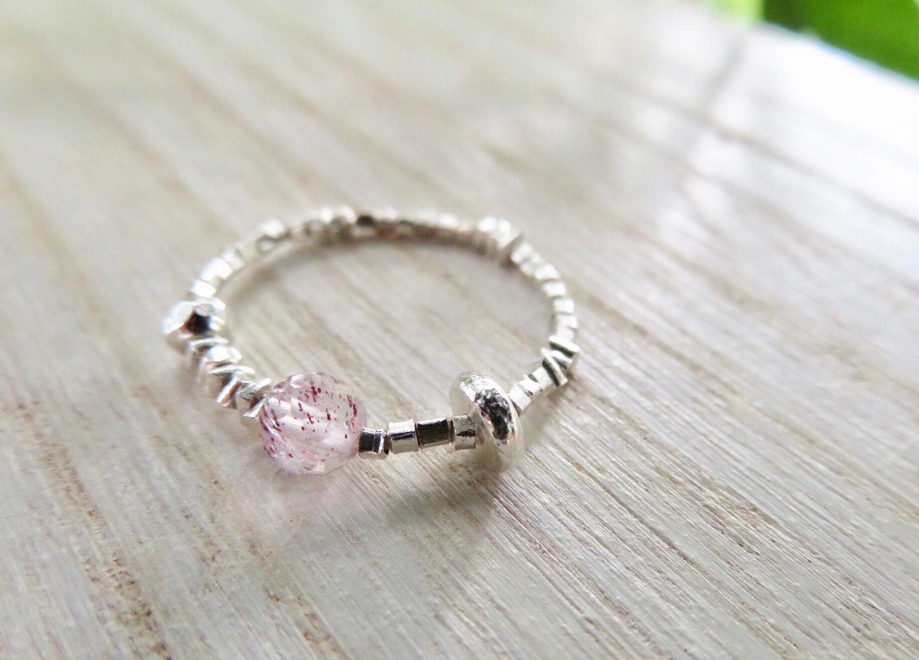 ピンクエピドートクォーツとタイの山岳民族カレン族のシルバービーズを指輪に仕立てました。