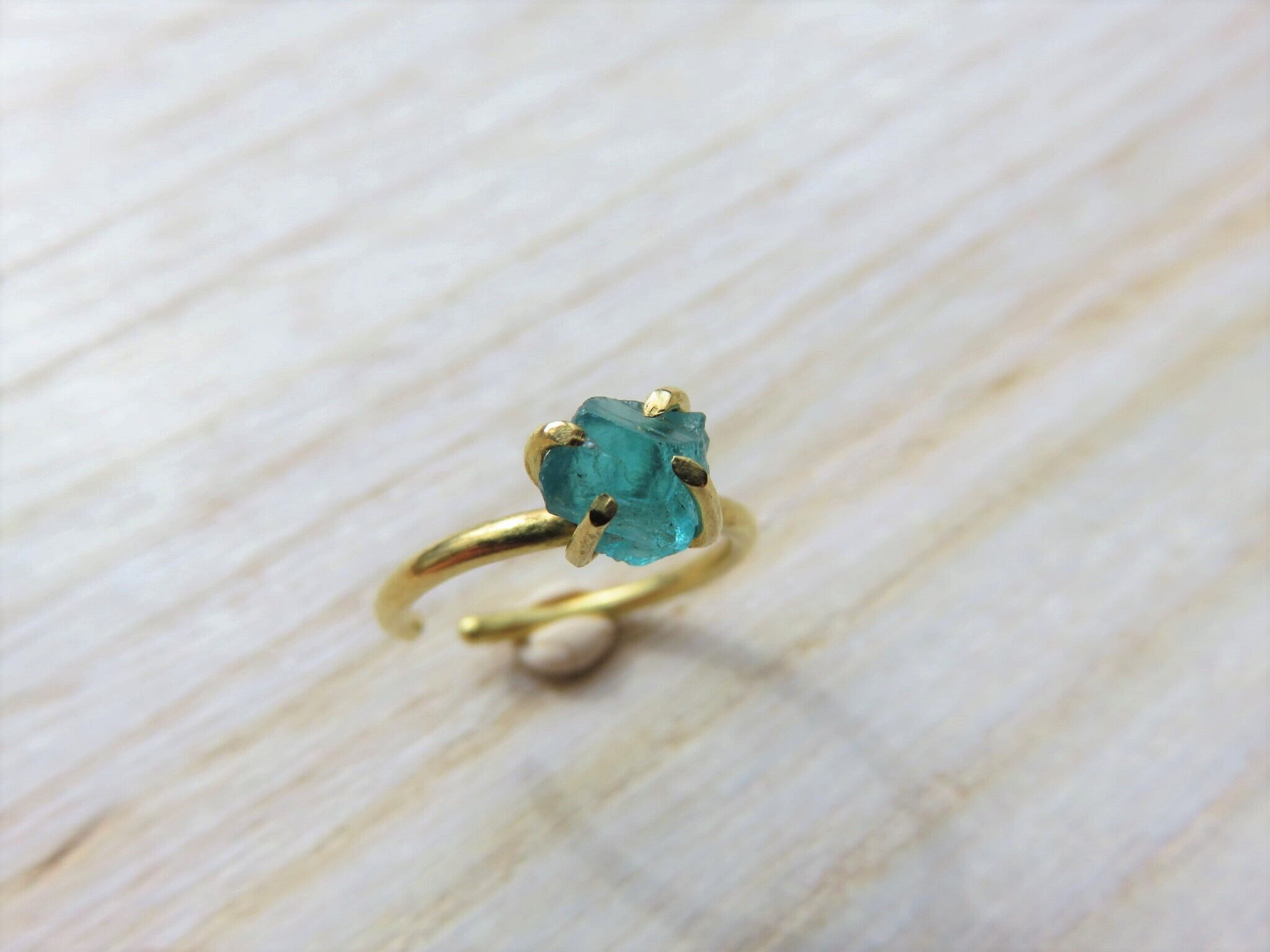 南国の海のような美しいブルーアパタイトの原石を爪留めした真鍮のイヤーカフです。