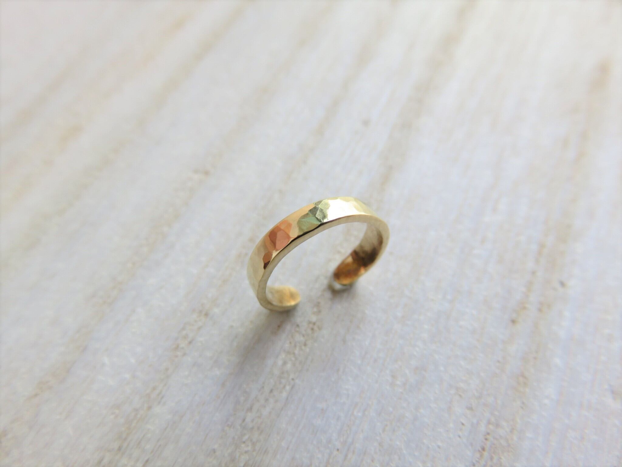 幅2ミリと細めの真鍮のイヤーカフです。表面は槌目加工で仕上げました。薄めの板で製作してるのでサイズは調整しやすく、耳あたりも優しいです。