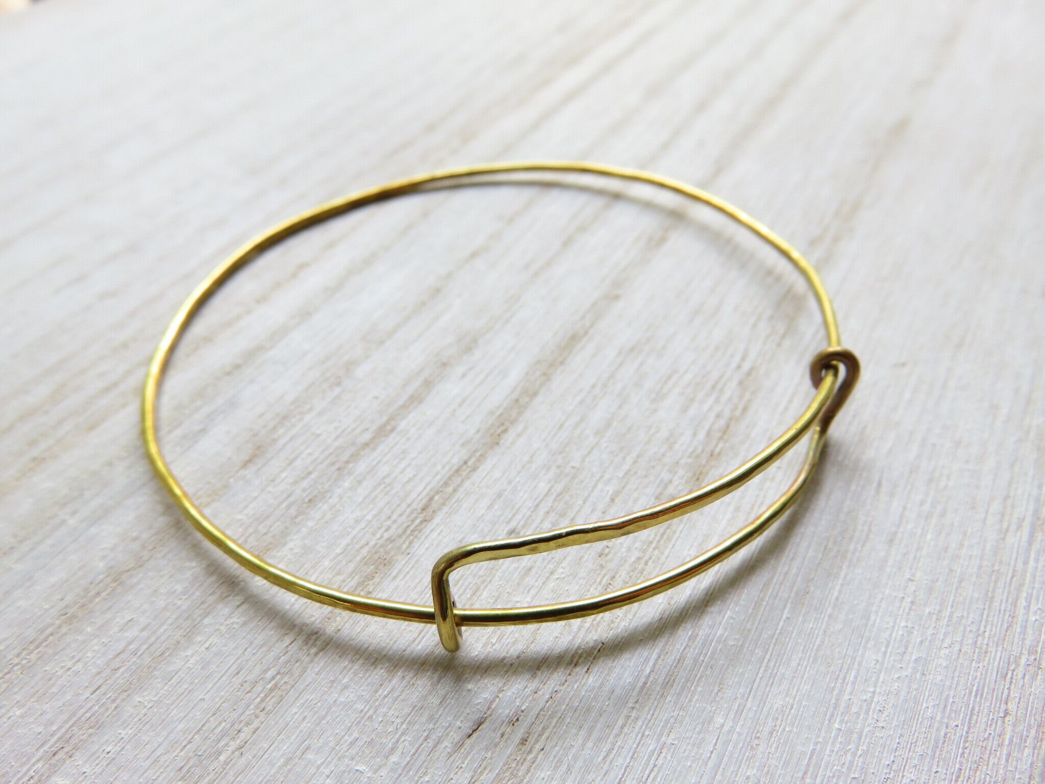 細い真鍮線を表情を見ながら叩いて槌目を付けました。引っ掛けている部分が左右に動くので多少調整できます。華奢なフォルムで手首を美しく見せます。