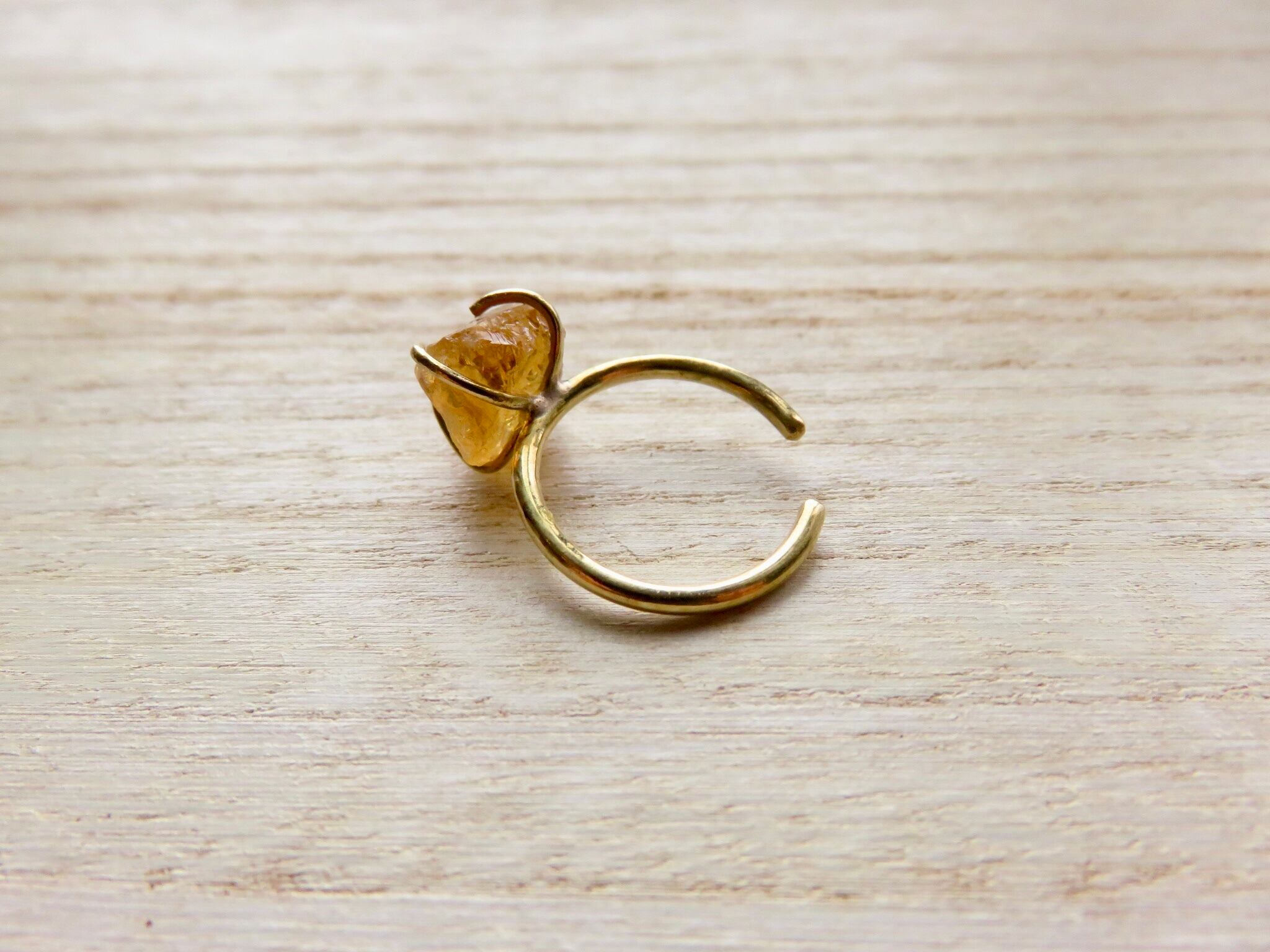 太陽を象徴すると言われている11月の誕生日のシトリン原石を立爪で留めたイヤーカフです。